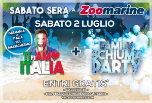 Zoomarine festeggia il suo Decennale con una serie di eventi serali e apre la sua Piazza principale per fare festa insieme a tutti i visitatori. Sabato 2 luglio grandissima Festa serale con ingresso e parcheggio GRATUITI!!! I visitatori della giornata potranno trattenersi in Piazza mentre gli altri potranno accedere a partire dalle 19:00. Tantissime le attività in programma: maxischermo con diretta TV per seguire e tifare tutti quanti insieme l’ITALIA contro la Germania nel match valido per accedere alla semifinale degli Europei 2016 di calcio; trucca bimbi a tema Italia; Family Schiuma Party; stand gastronomici, cocktail bar e altro ancora per scatenarci e divertirci insieme all’Animazione Zoomarine. Queste aperture serali speciali sono previste tutti i sabato fino al 27 agosto con tantissime attività e iniziative speciali.