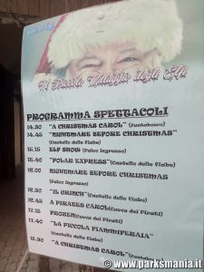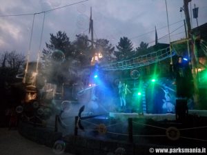Sullo stesso palco viene proposto, poco dopo l’inizio della giornata, Elf Show che, nonostante i vari problemi tecnici segnalati finora anche per gli altri spettacoli, rappresenta un’idea azzeccata in quanto è un mix di canti e balli con i personaggi che animano il parco ed è quindi anche l’occasione di avere un’anticipazione sugli show successivi, di cui vengono pubblicizzati anche gli orari d’inizio.